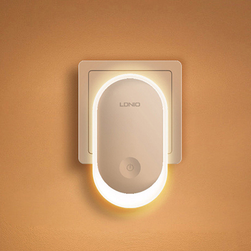 چراغ خواب Ldnio Y1 Crescent PIR Motion Sensor Night Light چراغ Ldnio Y1 را می توانید با اتصال به پریز به عنوان چراغ خواب استفاده کنید یا هر گوشه ای که لازم دارید را با نور ملایم روشن کنید. این چراغ می تواند با تشخیص میزان نور و حرکت به صورت خودکار روشن شود. مشخصات چراغ Ldnio Y1 چراغ خواب الدینیو Y1 به گونه ای طراحی شده است که برای استفاده از آن باید به پریز برق متصل کنید. اندازه کوچک و جمع و جوری دارد و روی بدنه آن یک کلید لمسی برای کنترل عملکرد آن تعبیه شده است. توان چراغ خواب الدینیو 0.5 وات و از 8 عدد LED با توان 0.2 وات ساخته شده است. نور ساطع شده از چراغ خواب الدینیو Y1 با دمای رنگی 3500 کلوین، گرم و ملایم است که چشم را خیره نمی کند و می تواند در تاریکی یک همراه خوب برای شما باشد. شما می توانید میزان شدت نور را تنظیم کنید. چراغ Ldnio Y1 شدت نوری که تنظیم می کنید را به خاطر می سپارد و زمانی که مجددا روشن می شود به همان شدت نور تنظیم شده بر می گردد. این چراغ خواب دارای نور حلقوی 360 درجه است. دو شاخه اتصال به برق چراغ Ldnio Y1 از نوع EU است که با پریز های ایران سازگار است. سنسور نور و حرکت چراغ Ldnio Y1 دارای سنسور نور و حرکت PIR است. عملکرد این سنسور به گونه ای است که در محیط روشن تاریکی ناگهانی را تشخیص داده و روشن می شود. همچنین اگر در محیط تاریک حرکت را تشخیص دهد، روشن می شود. این مزیت به شما این امکان را می دهد تا از آن در کنار تخت خواب خود استفاده کنید تا در طول شب در صورتی که از تخت خود پایین روید؛ روشن شود.