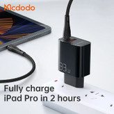 برای اینکه بتوانیم وسایل خود را به بهترین شکل ممکن شارژ کنیم روشهای مختلفی پیش روی ماست؛ اما مطمئن ترین راه استفاده از شارژرهای دیواری است. پورت بیشتر، توان بالاتر و شارژ سریع از ویژگی های مهم یک شارژر دیواری است. شارژر دیواری مک دودو مدل CH-0921 دارای 2 پورت است و توان آن 33 وات است و در عین حال قادر به شارژ سریع دو دستگاه به طور هم زمان هم میباشد. مبدل این شارژر دیواری از نوع EU بوده که یعنی برای استفاده پریزهای داخل ایران مشکلی برای استفاده نداریم. آداپتور مک دودو CH0922 دارای یک درگاه تایپ سی و یک درگاه یو اس بی (USB) است. این پورت ها از تکنولوژی فست شارژ پشتیبانی میکنند. ورودی این محصول برابر با 100V-240V / 0.8A است و با برق شهری قابل استفاده است. این مبدل از استانداردهای QC و PD استفاده کرده تا امکان بهره مندی از شارژ سریع برای شما وجود داشته باشد و بتوانید با سرعت بالایی گوشی خود را شارژ کنید. البته لازم است که دستگاه شما هم قابلیت فست شارژ داشته باشد. ابعاد آداپتور مک دودو 82.6x43.5x25.7 میلی متر بوده و وزن آن 65 گرم است که با این ابعاد و وزن کم شما می توانید آن را در هر مکانی به راحتی همراه خود ببرید. جنس این محصول از متریال PC است که در برابر گرما دوام مناسبی دارد. همچنین این شارژر دارای کابلی به طول 1.2 متر هم هست که دارای توان حداکثری 60 واتی بوده و دو سر آن تایپ سی است. و نیاز نیست کابل جداگانه برای آن تهیه کنید. شدت جریان و ولتاژ خروجی هر کدام از پورتها متفاوت است. اگر فقط از پورت تایپ سی استفاده کنید از توان 33 وات بهره مند می شوید و اگر از پورت USB استفاده کنید از توان 30 وات بهره می برید. در صورت استفاده همزمان از دو پورت توان ها بین پورت تقسیم خواهد شد. توجه کنید که دستگاه شما هم باید دارای این شدت توان باشد چون تراشه هوشمندی که در این شارژر وجود دارد، توان ورودی دستگاه شما را تشخیص داده و متناسب با آن به دستگاه شما توان وارد می کند و اگر کمتر باشد سرعت را پایین میاورد. این امر باعث می شود به دستگاه و باتری شما آسیبی وارد نشود. مک دودو یکی از شرکت های بزرگ و بسیار معروف در زمینه تولید لوازم جانبی موبایل و از پیشروهای این صنعت است و در سال های اخیر موفق به کسب جوایز متعدد در زمینه کیفیت و طراحی شده است.