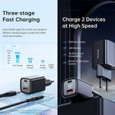شارژر دیواری 33 وات مک دودو مدل Digital Display دو پورت دارای پورت USB A و USB C، دو دستگاه خود را همزمان شارژ و روشن کنید.شارژر دیواری مک دودو با کد CH-1701 دارای صفحه نمایش دیجیتال با امکان نمایش علامت شارژ سریع + Power Active، وضعیت شارژ قابل مشاهده و واضح است.صفحه نمایش دیجیتال LED قابل مشاهده: سطح با آبکاری تمیز ، پر از فناوری. صفحه نمایش دیجیتال مخفی، چراغ های دیجیتال با نور ملایم قدرت شارژ را در زمان واقعی نمایش می دهند.نه فقط یک شارژر تلفن 2 پورت با توان برق 33 وات بلکه شارژر مکدودو (سری گرافیت) برای شارژ تلفن، تبلت، لپ تاپ و سوئیچ شما ایده آل است.شارژ سریع سه مرحله ای: برای محافظت از سلامت باتری دستگاه، جریان و ولتاژ مراحل مختلف شارژ را به صورت خودکار تنظیم می کند.کنترل دمای فعال: کنترل هوشمند دما، اتلاف گرمای فعال و سریع برای محافظت از دستگاه های شما از قابلیت های این شارژر است.سازگاری با پروتکل های چندگانه شارژ سریع : PD، C3.0، QC4.0، QC4+، FCP، SCP، AFC، PPS و غیره را دارد.شارژ با سرعت بالا:iPhone13: شارژ 30 درصد در 15 دقیقه ، iPad pro: شارژ 65 درصد در 1 ساعت ، مک بوک ایر: شارژ کامل در 150 دقیقه و Redmi K40: شارژ کامل در 52 دقیقه بوسیله این شارژر انجام می شود.