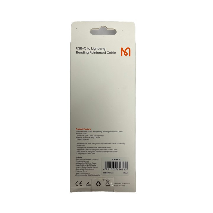 کابل Type C به Lightning مک دودو Mcdodo CA-563 دارای طول یک متر و حداکثر شدت جریان 3 آمپر می باشد. این محصول مک دودو با سیمی از جنس نایلون بافته شده دارای کیفیت بسیار عالی و طول عمر بالایی میباشد.