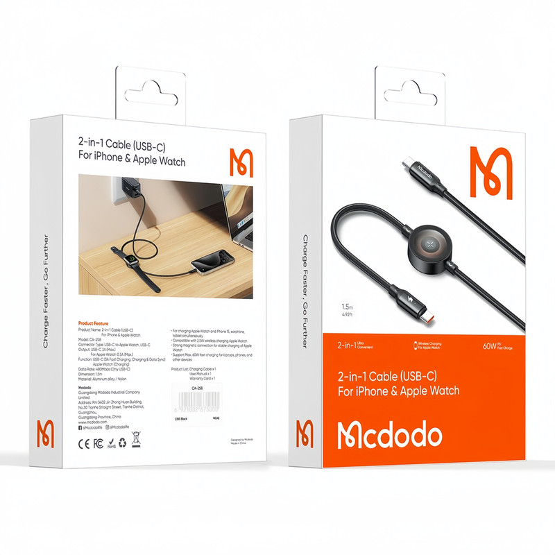 تکنیک تل با افتخار تجربهای لوکس و متفاوت از دنیای فناوری را به شما ارائه میدهد. با تمرکز بر سه اصل کلیدی کیفیت، خلاقیت و نوآوری، به عنوان واردکننده پیشرو محصولات فناوری، بهترین لوازم جانبی روز دنیا را در اختیار مشتریان ایرانی قرار میدهیم. یکی از محصولات برجسته ما، کابل شارژ چندمنظوره Mcdodo مدل CA-258 است که راهحلی ایدهآل برای کاربرانی است که به دنبال راحتی و کارایی بالا در شارژ دستگاههای خود هستند. کابل Mcdodo مدل CA-258 با طول 1.5 متر و توان 60 وات، امکان شارژ سریع دستگاههای مختلف از جمله لپتاپ، آیفون، و ساعت هوشمند اپل (Apple Watch) را فراهم میکند. این کابل با طراحی 2 در 1 به شما اجازه میدهد گوشی و ساعت هوشمند خود را بهصورت همزمان و بدون نیاز به کابلهای متعدد شارژ کنید. این ویژگی، تجربه کاربری شما را سادهتر کرده و نظم بیشتری در محیط ایجاد میکند. تکنولوژی شارژ سریع PD به همراه چیپ هوشمند داخلی که جریان و ولتاژ را بهطور خودکار تنظیم میکند، امنیت شارژ را تضمین کرده و از دستگاهها در برابر دمای بالا و بیششارژ محافظت میکند. تکنیک تل با واردات این کابل، به کاربران ایرانی امکان استفاده از جدیدترین و پیشرفتهترین فناوریهای روز دنیا را فراهم میکند. کابل CA-258 با ساختار TPE مقاوم و روکش فلزی بادوام طراحی شده است، که دوام بالایی در برابر سایش و خمیدگی دارد و آن را برای استفاده روزمره بسیار مناسب میسازد. یکی دیگر از ویژگیهای برجسته این محصول، قابلیت شارژ بیسیم مغناطیسی برای Apple Watch است که به شما اجازه میدهد بهراحتی و بدون نیاز به داکهای جداگانه، ساعت هوشمند خود را شارژ کنید. طراحی ارگونومیک و مغناطیسی این کابل تضمین میکند که دستگاهها به طور ایمن به کابل متصل شده و هیچ نگرانی از قطع اتصال نخواهید داشت. این کابل نهتنها یک ابزار برای شارژ سریع است، بلکه بهعنوان یک راهحل چندمنظوره برای مدیریت بهتر دستگاههای شما عمل میکند. اگر به دنبال کابلی هستید که ترکیبی از کیفیت ساخت بالا، راحتی در استفاده و عملکرد عالی داشته باشد، تکنیک تل کابل Mcdodo مدل CA-258 را به شما پیشنهاد میکند. این کابل با طراحی هوشمند و عملکرد قدرتمند، تمامی نیازهای شما را در زمینه شارژ سریع و همزمان دستگاههای مختلف پوشش میدهد.