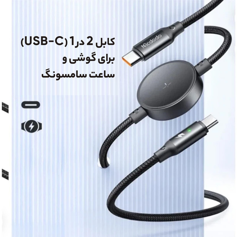 کابل شارژ تایپ سی به تایپ سی و سامسونگ واچ مدل ca-4170 که مناسب برای شارژ موبایل با ورودی تایپ سی وساعت سامسونگ و لپ تاپ میباشد. حداکپر توان خروجی برای شارژ گوشی موبایل و لپ تاپ 65 وات و برای ساعت سامسونگ 2.5 وات میباشد واز سلامت باتری دستگاه شما محافظت می کند و حرارت را در حین استفاده کاهش می دهد. به طور خودکار سری های مختلف ساعت را برای شارژ آسان تا حداکثر 2.5 وات پشتیبانی میکند. طول کابل 1.5 متراست و به اندازه کافی بلند است تا در تنظیمات مختلف مانند محیطهای اداری دسترسی کافی داشته باشد و امکان شارژ راحت در حین کار را فراهم کند. سرعت انتقال داده 480 مگابیت بر ثانیه دارد.