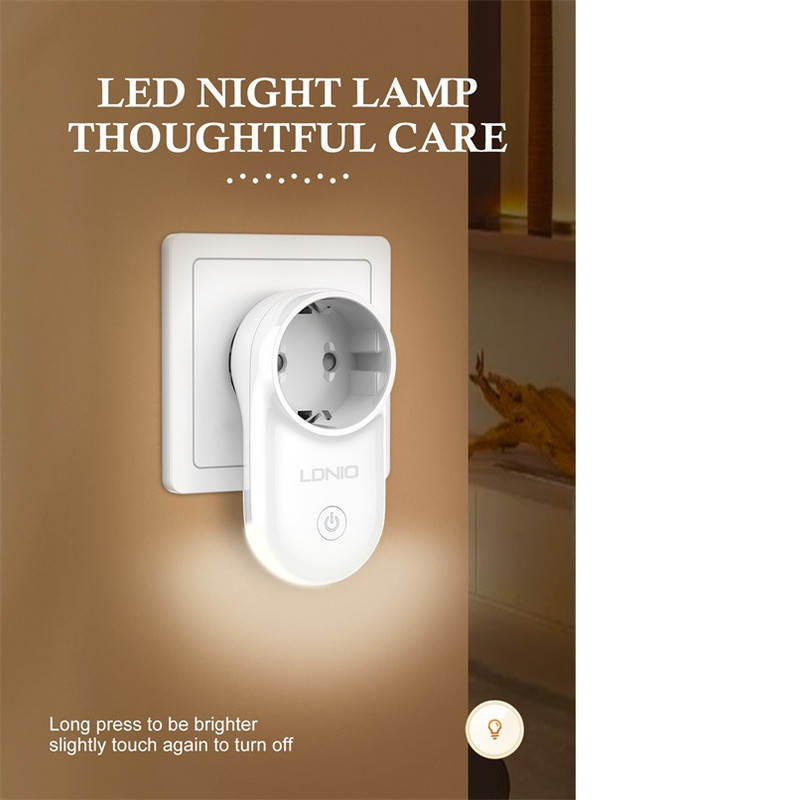 مبدل برق LDNIO SEW1058 دارای درگاه ورودی از نوع EU است که از دوشاخه های رایج در ایران پشتیبانی می کند و دوشاخه اتصال به برق آن نیز از نوع EU است. چراغ خواب LED قرار گرفته در قسمت زیرین سوکت برق هوشند الدینیو SEW1058 کامل کننده ویژگی های ظاهری آن است که قابل تنظیم است.