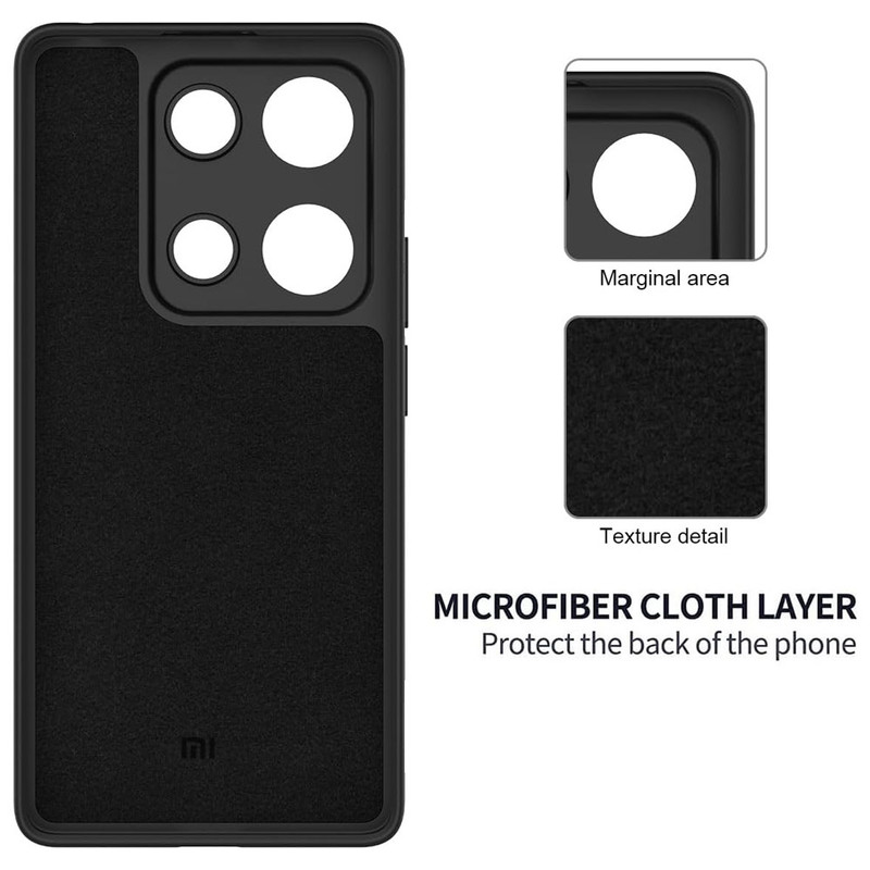 ساخته شده از سیلیکون مایع، جنس داخل قاب موکتی است که از خط و خش افتادن روی گوشی همراه جلوگیری می کند، دارای محافظ لنز و همچنین لبه های برجسته برای ضربه گیری بیشتر و عدم آسیب رسیدن به لنز حتی در برابر افتادن، دسترسی آسان به درگاه ها، اتصال آسان به شارژر وایرلس بدون نیاز به جدا کردن قاب