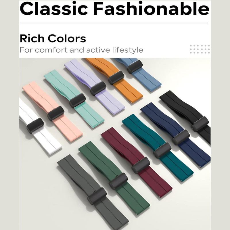بند سیلیکونی مگنتی برای مدلهای مختلف ساعت هوشمند طراحی شده است. بند سیلیکونی مدل Magnetic Claps به دلیل کیفیت بالای مواد سیلیکونی به کار رفته در آن، محصولی با کیفیت و مرغوب را در اختیار کاربر قرار میدهد. همچنین این بند سیلیکونی دارای سطحی نرم و بسیار بادوام بوده و حس خوبی را به کاربر منتقل میکند. بند لاستیکی مدل Magnetic Claps وزن سبکی که دارد، راحتی قابل توجهی را برای کاربر فراهم میکند. با خرید این محصول که در رنگ بندی متنوع در دسترس است، میتوان استایل این ساعت را به سلیقه کاربر تغییر داد. از جمله نقاط قوت این بند ، قابلیت نصب و جداسازی سریع آن است. درواقع این بند سیلیکونی دارای قفل مگنتی و ضدحساسیت استیل بوده و به خوبی و به سرعت در مچ دست چفت میشود و حس امنیت را در کاربر ایجاد میکند. همچنین دکمهای در این بند ساعت هوشمند قرار داده شده که کاربران میتوانند به راحتی تنها با فشردن آن، بند ساعت را خارج کنند. از جمله قابلیتهای این محصول که کاربران را ترغیب به خرید بند سیلیکونی میکند، میتوان به خاصیت ضدتعریق، ضد گرد و خاک و ضدآب آن اشاره کرد.